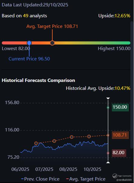 Based on 49 analysts from Tiger Brokers offering 12 month price targets for Uber Technologies in the last 3 months. The average price target is $108.71 with a high forecast of $150.00 and a low forecast of $82.00. The average price target represents a 12.65% change from the last price of $96.50.