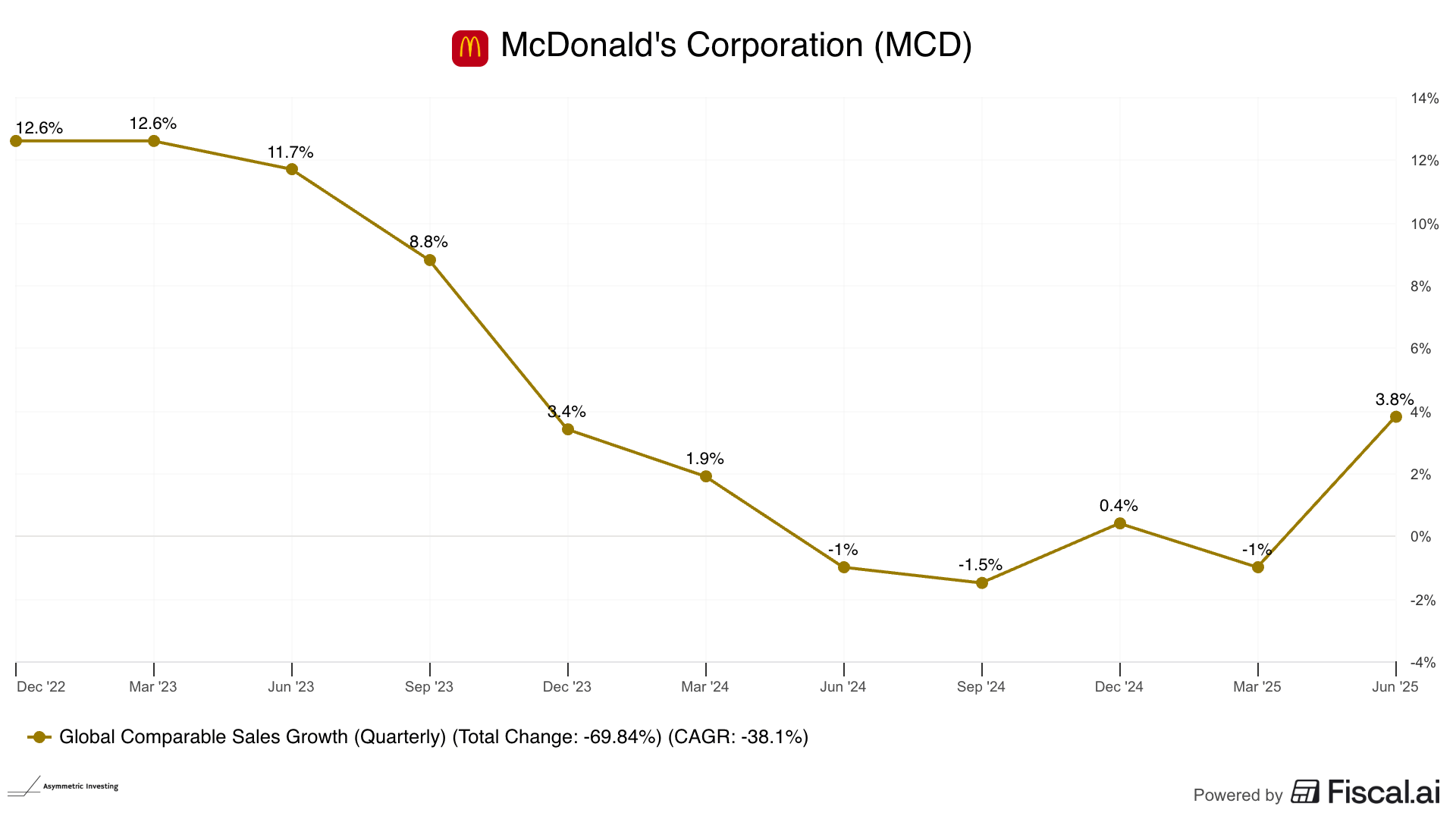 If the consumer is weak, it would make sense that $McDonald's(MCD)$ ’s would be seeing growth, as we saw in 2008 when same-store sales jumped 6.9% despite a deep recession. But that wasn’t the case until the last few months.