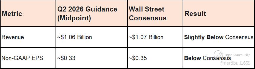 While the Q1 results were strong and met expectations, the accompanying guidance for Q2 fiscal 2026 was viewed as a bit cautious or "soft" by Wall Street, leading to a moderate drop in the stock price post-announcement.