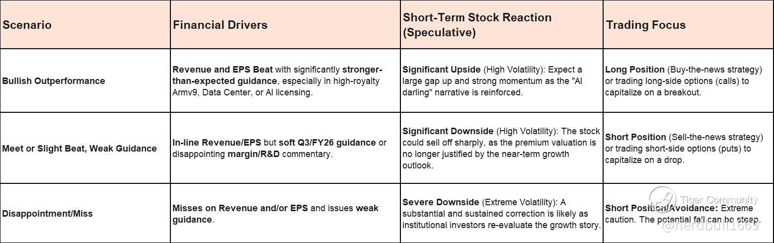 Disclaimer: Short-term trading based on earnings is highly risky and speculative. ARM's high valuation (P/E over 200) suggests the stock has a high-growth premium built in, meaning volatility is almost guaranteed.