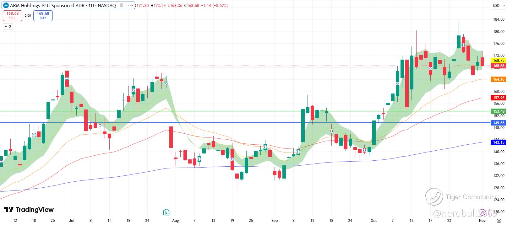 We have seen how ARM have make a decline after we saw the share price rise pretty above 12-EMA, and that was a pullback we saw last week after a short surge up, now we can see that ARM is consolidating ahead of its earnings.
