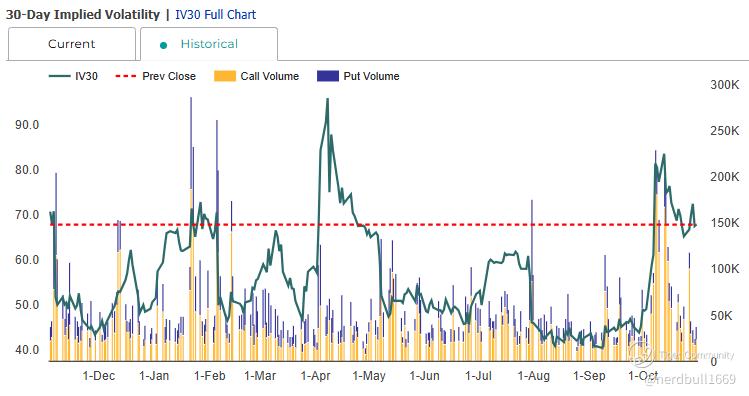 ARM implied volatility (IV) is 65.6, which is in the 78% percentile rank. This means that 78% of the time the IV was lower in the last year than the current level. The current IV (65.6) is -8.6% below its 20 day moving average (71.8) indicating implied volatility is trending lower.