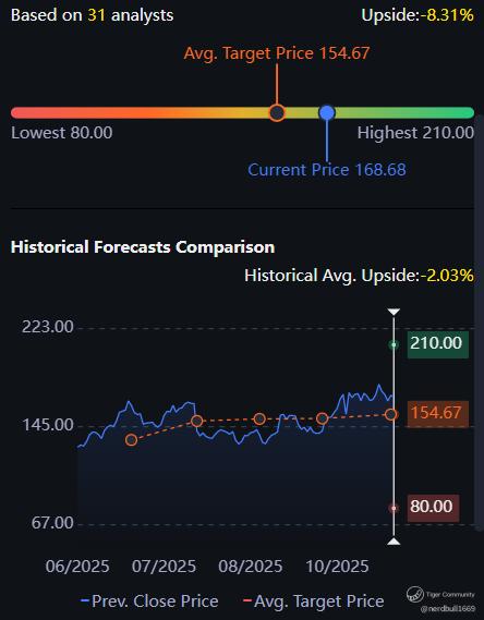 Based on 31 analysts from Tiger Brokers offering 12 month price targets for ARM Holdings PLC ADR in the last 3 months. The average price target is $154.67 with a high forecast of $210.00 and a low forecast of $80.00. The average price target represents a -8.31% change from the last price of $168.68.