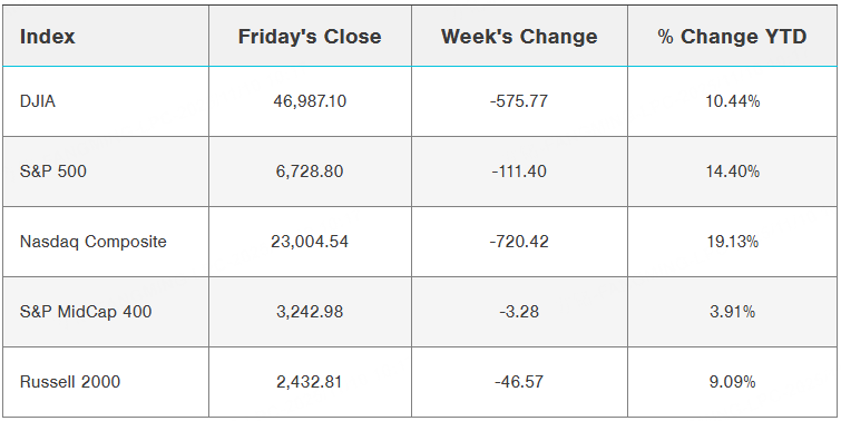 A tech-led rout snapped the S&P 500’s three-week win streak: fears that AI budgets are over-hyped and multiples too rich triggered a violent rotation, sending the Nasdaq down >3 % and pushing the Russell 1000 Growth 288 bp behind value—its worst gap since February.