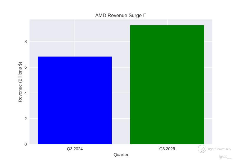 Buckle up, folks—AMD just dropped a bombshell Q3 earnings report that's got Wall Street buzzing like a hive of caffeinated bees! 📈 Revenue clocked in at a scorching $9.25 billion, smashing expectations and leaping 36% year-over-year. That's not just growth; that's a full-on sprint. Adjusted EPS? A solid $1.20, edging out the $1.17 whisper number and proving AMD's got the muscle to flex in this tech arena. Shares popped 2.51% post-report, and as of today, they're hovering around $231—prime position for liftoff? 💥