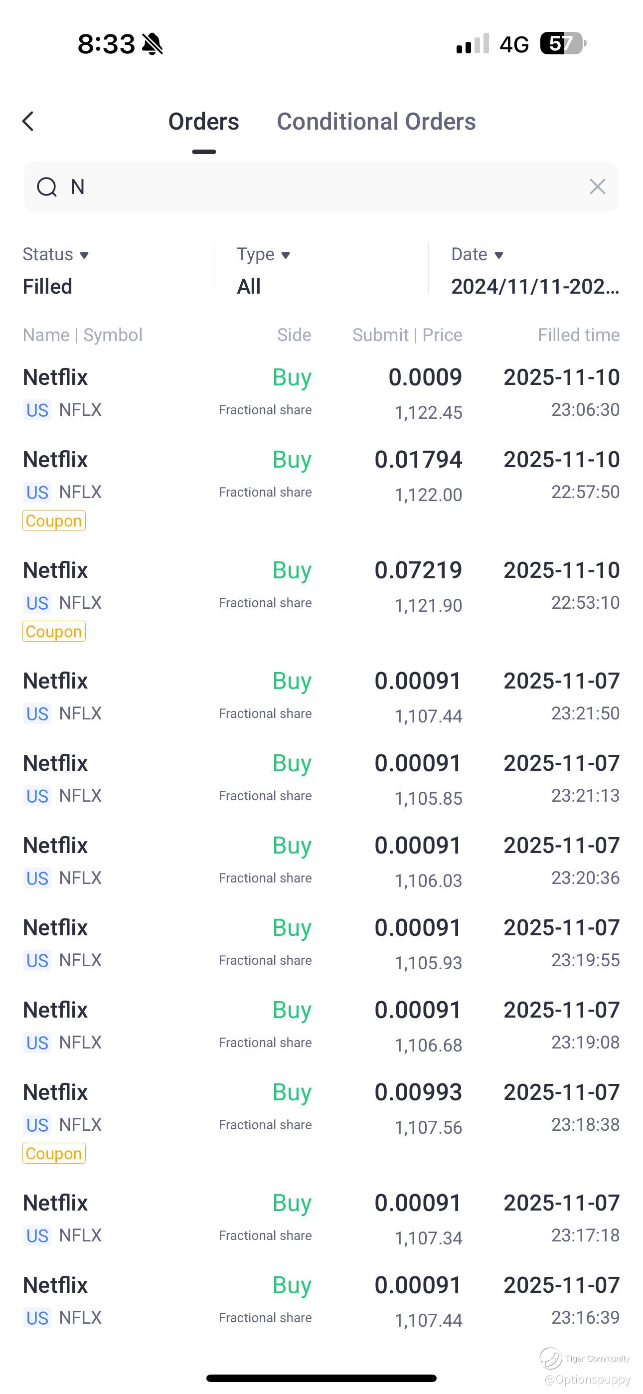 Every day that Netflix trades, I try to add a bit more. Whether it’s a small dip or a green day, I buy. Some people chase big moves, but I prefer slow and consistent accumulation — it keeps my emotions in check.