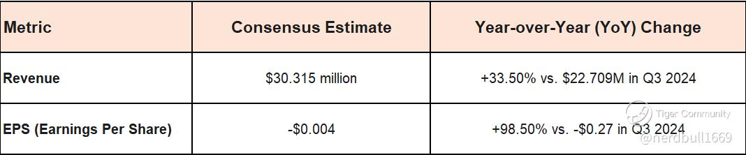 Consensus Estimates: Analysts anticipate a significant turnaround, with Revenue forecast at approximately $30.3 million ( YoY) and EPS near break-even at $-$0.004 (a improvement YoY).