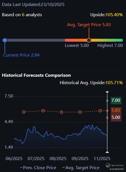 Based on 6 analysts from Tiger Brokers offering 12 month price targets for Bit Digital in the last 3 months. The average price target is $5.83 with a high forecast of $7.00 and a low forecast of $5.00. The average price target represents a 105.40% change from the last price of $2.84.