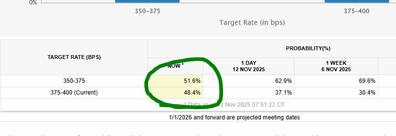 Market is split in middle for December rate cut.