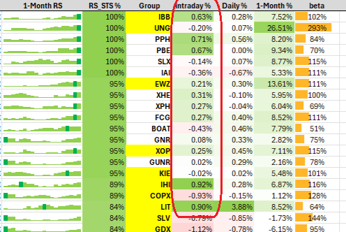 Intraday Change % Comparison: Strongest 1-Month RS Groups vs Weakest 1-Month RS Groups