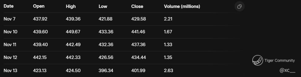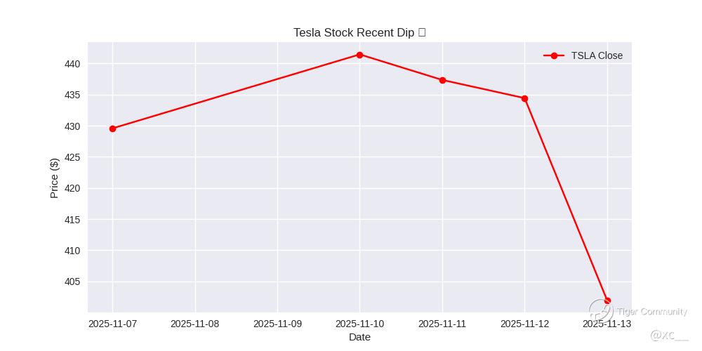 $GraniteShares 1.25X Long TSLA Daily ETF(TSL)$ aWhoa, Tesla's stock just took a nosedive, dipping below that $400 mark after a brutal 6.6% slide in a single session, marking its sharpest tumble in months and dragging it down over 10% from recent highs tied to Elon Musk's massive pay package approval. 🚀💥 But hold up—while the year-to-date ride shows a solid 6% gain overall, this recent 16% plunge from a 30-day peak of $474 feels like a gut punch for investors. Is this a golden entry point at around $402, or should you play it cool and wait for even steeper "Black Friday" style discounts on the horizon? Let's dive deep into the chaos, crunch the numbers, and unpack if ARK Invest's recent sell-off spells trouble or just smart profit-taking. 🧐💰