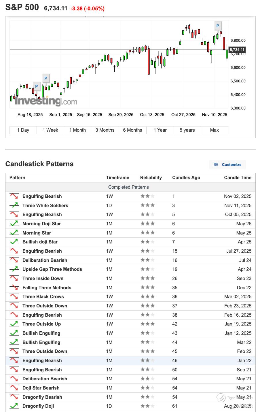 Of 25 patterns, 32% are bullish and 68% bearish, with bearish signals stronger in mid- to long-term trends — reliable patterns centre on bearish engulfings and three-candle formations. Recent signals are mixed, reflecting volatile chart moves. The August–September uptrend followed earlier bullish patterns, but recent pullbacks match bearish signals, likely due to profit-taking or external factors.