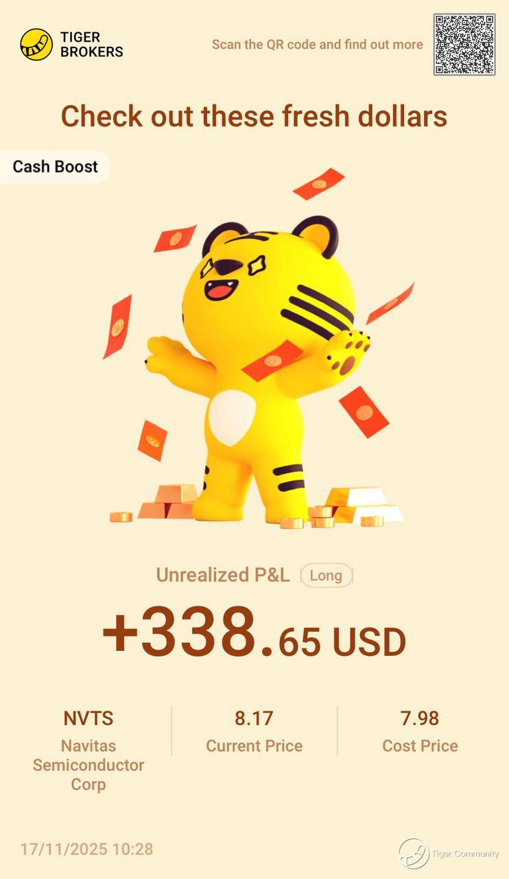 $Navitas Semiconductor Corp(NVTS)$ delivered nice gains! Semiconductors remain strong—happy with this win and bullish for more growth. Shoutout to contra688 too, those free trading vouchers really make the ride smoother!