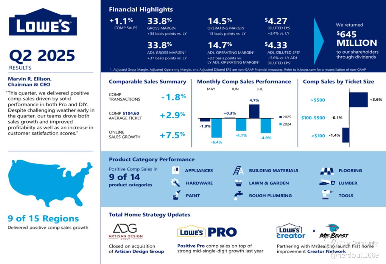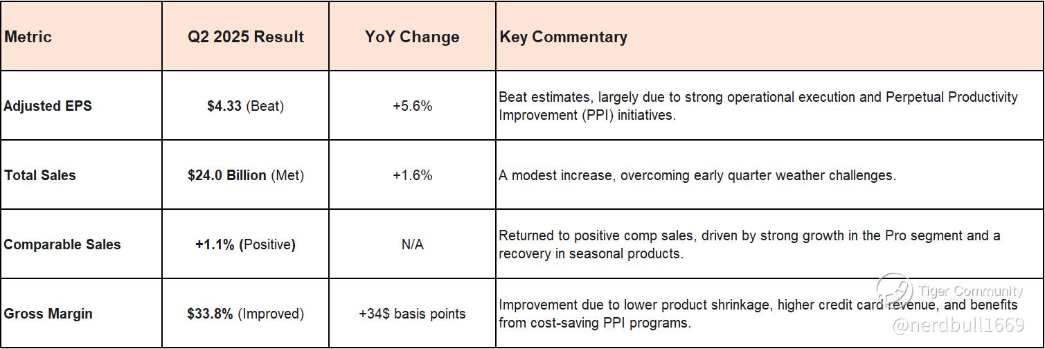 Lowe's delivered a solid quarter, with both top and bottom lines generally meeting or exceeding analyst expectations, showing resilience driven by strategic execution.