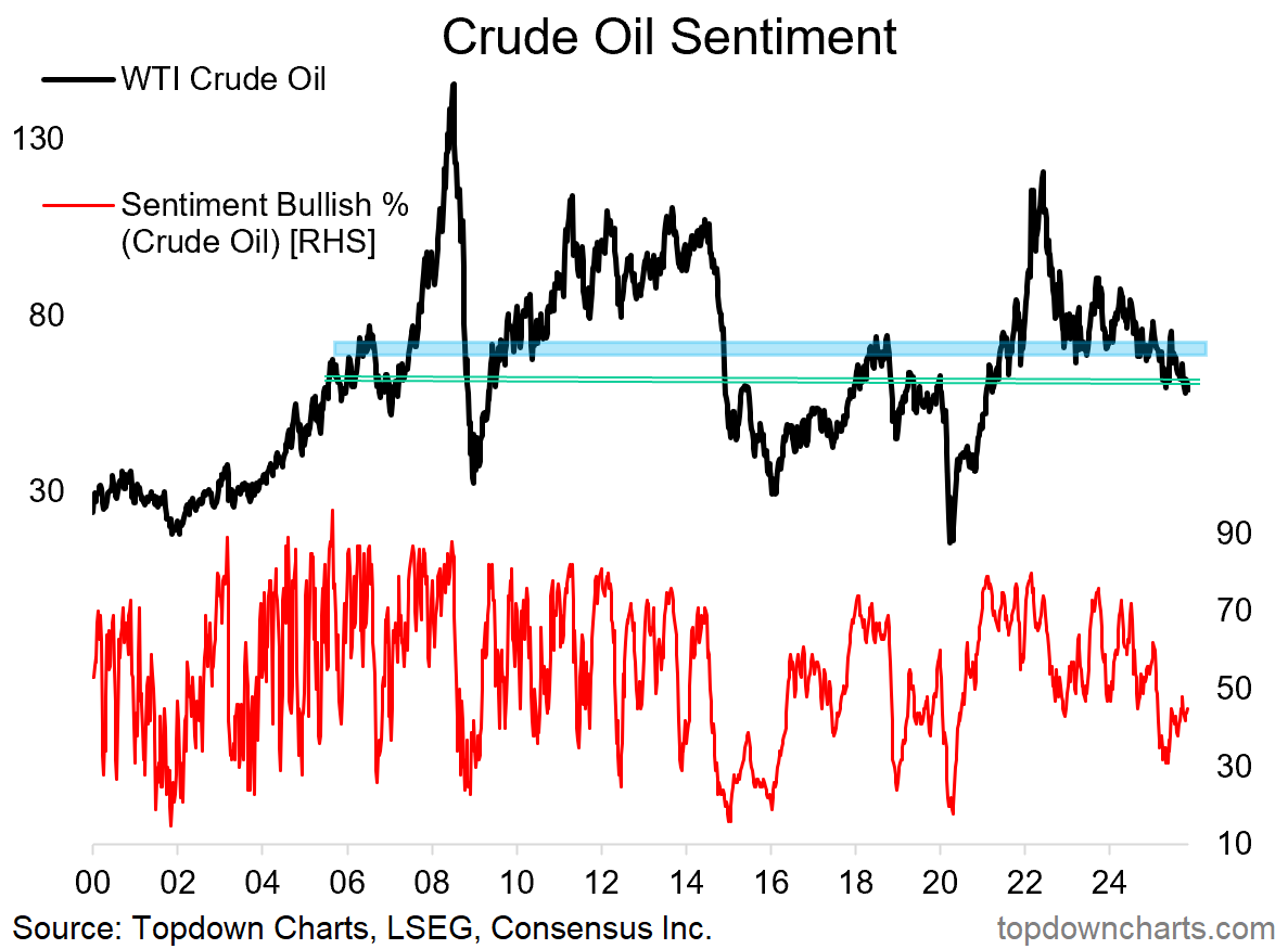 Of course a key variable for the previous two charts is going to be what happens with the oil price. At the moment neither bulls nor bears have really been able to gain the upper hand, with crude oil stuck in the range.