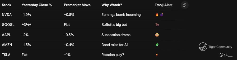Amazon ( $Amazon.com(AMZN)$ ) π° β Raising $15B in bonds for AI frenzy β but shares wobbly as rotation hits megacaps.