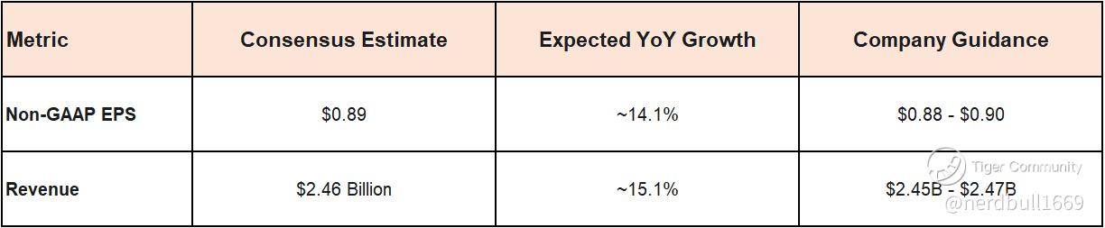 Revenue: Consensus is $2.46 Billion (a 15.1% YoY increase), aligning with company guidance of $2.45B - $2.47B.