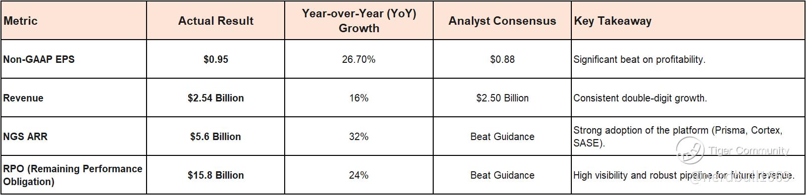 The Lesson: While total revenue growth for FY2026 was projected at a moderate $\sim14\%$ ($10.475B to $10.525B$), the high growth rate of NGS ARR proves that PANW is successfully executing its strategy of converting customers from single-product/fragmented security solutions to its comprehensive, high-value, subscription-based platforms (Cortex XSIAM, Prisma SASE, etc.). Investors and analysts rewarded the stock because the quality of growth is improving.