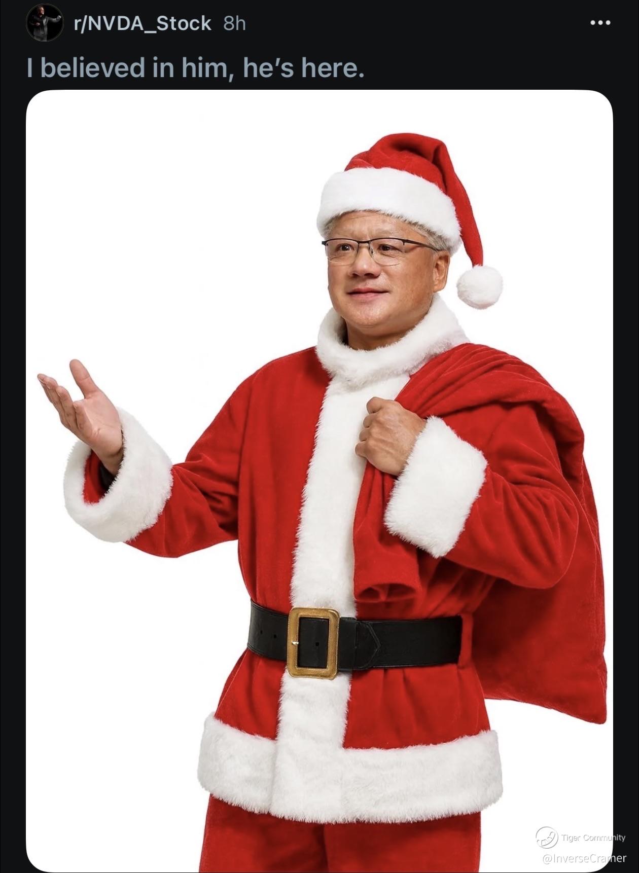 All eyes on $NVIDIA(NVDA)$ earnings tomorrow morning. ๐ ๐ ๐ Fret not Santa Huang is here to save the day. Early Xmas rally! ๐๐ผ ๐๐ผ ๐๐ผ $NVIDIA(NVDA)$ good or bad earnings report doesn't matter just hold and you'll do alright. Diamond hands FTW.