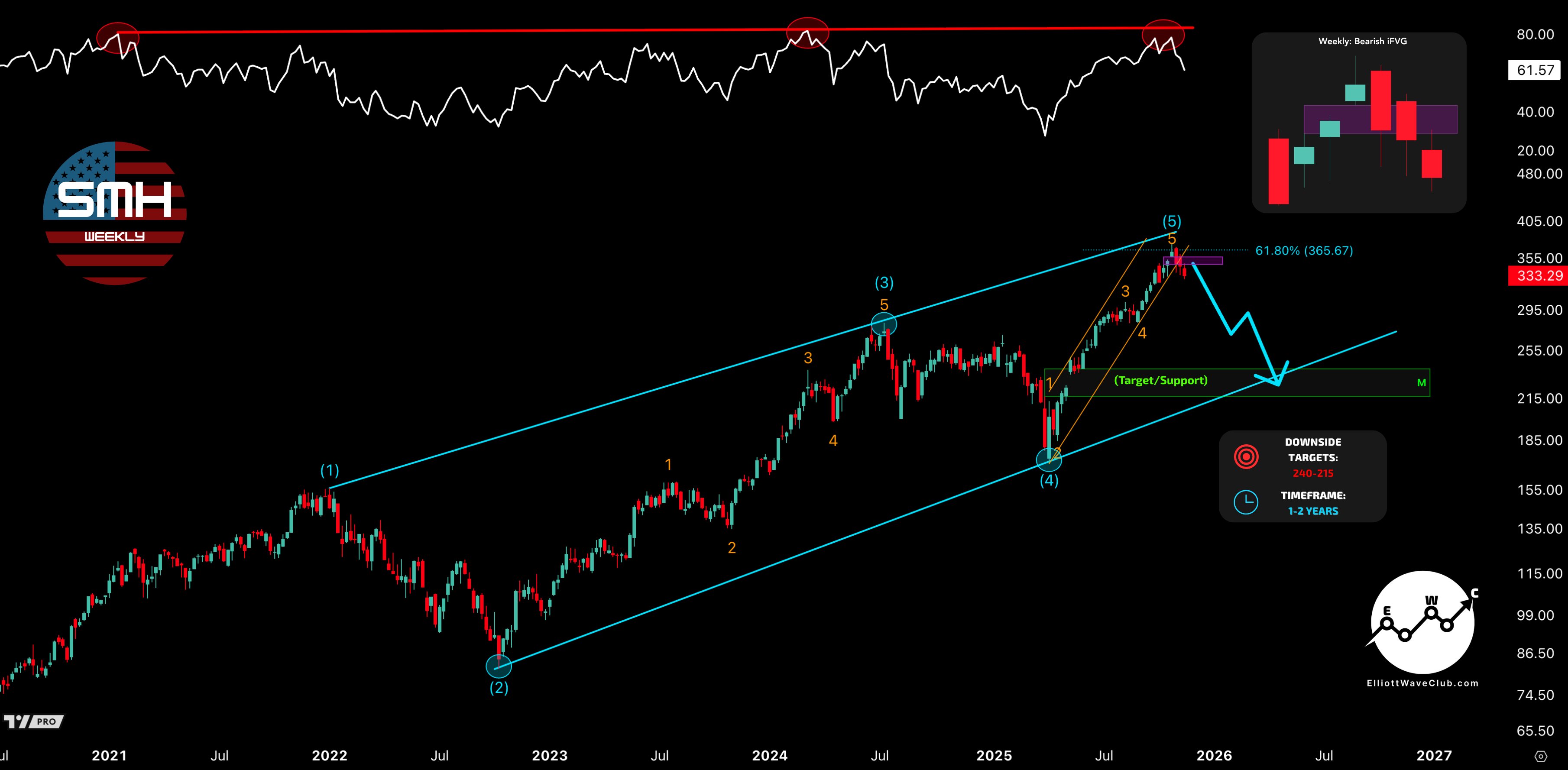 After tagging both the upper boundary of the multi-year channel and the golden fib extension, $VanEck Semiconductor ETF(SMH)$ inverted its Weekly FVG — something it hasn't done once since the April lows