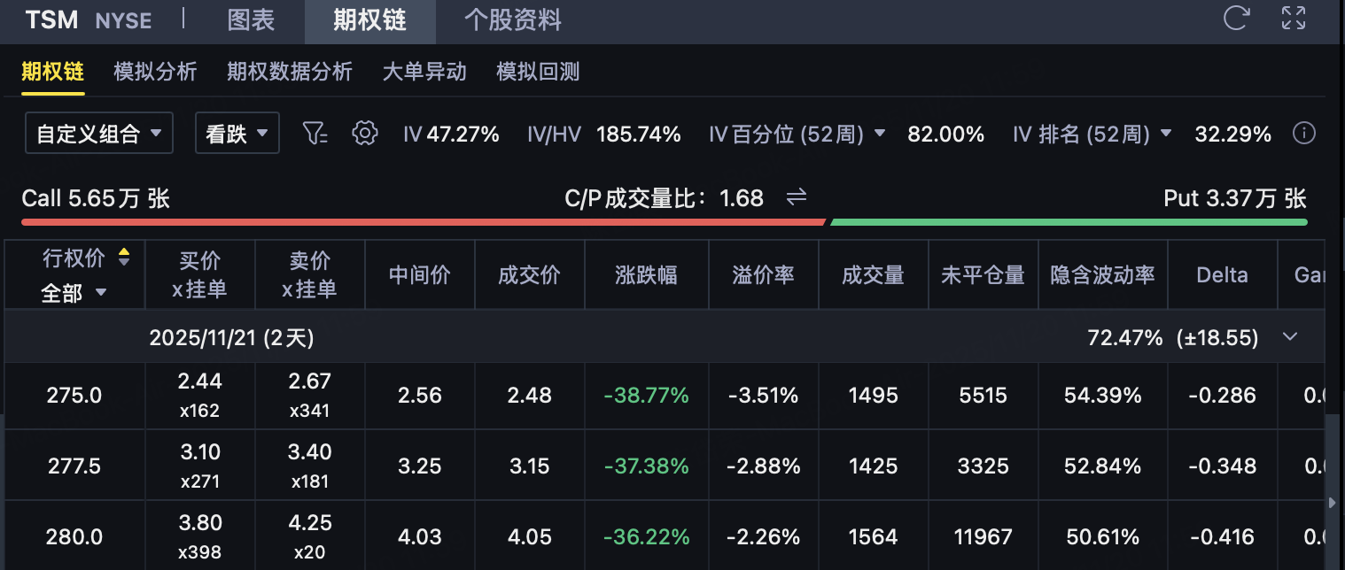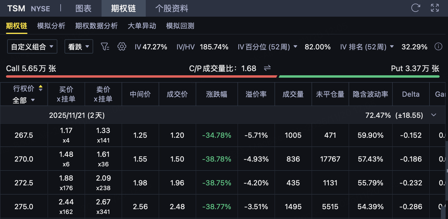 If TSMC price expires≤ $267.5, both Put shares are in-the-money, the spread is completely triggered, and investors suffer the biggest loss.