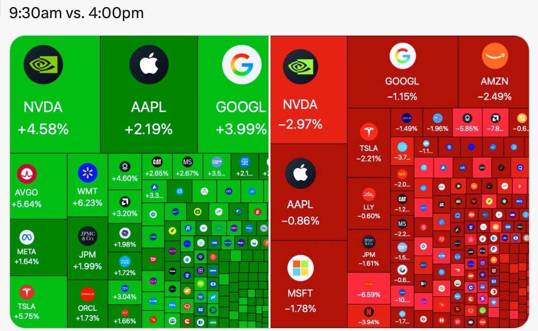 Last night should have been a celebration — $NVIDIA(NVDA)$ blew past expectations and jobs data looked perfect, sending $S&P 500(.SPX)$ up 1.9% at the open. The party lasted an hour. By the close the market collapsed.