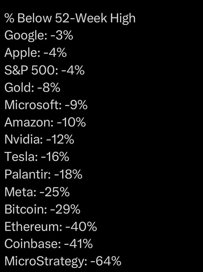 Some names are already down more than 20% from their peaks. The biggest losers so far have been crypto and high-beta tech — they’ve taken the brunt of the sell-off.