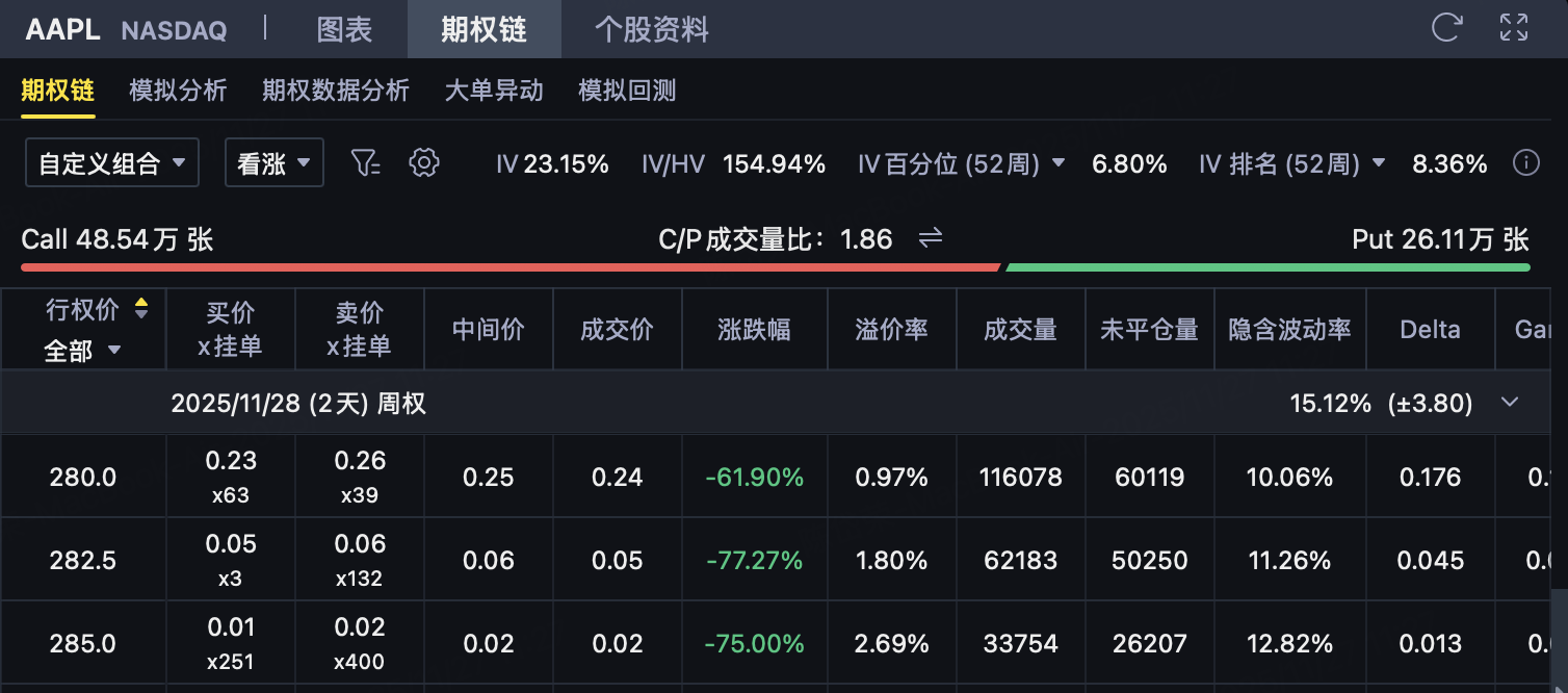 Applicable scenario: Investors don't think Apple will significantly break $280 before expiration, or want to profit from time-value decay