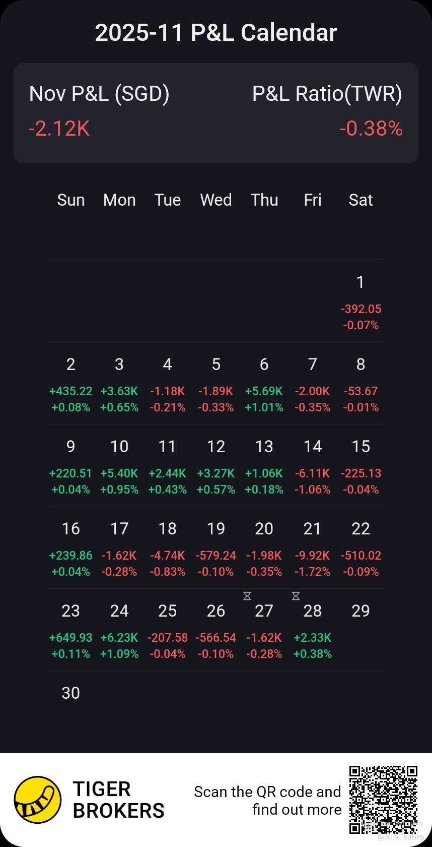 Nov 2025 Performance: A loss of SGD 2000 , representing a 0.4% loss.