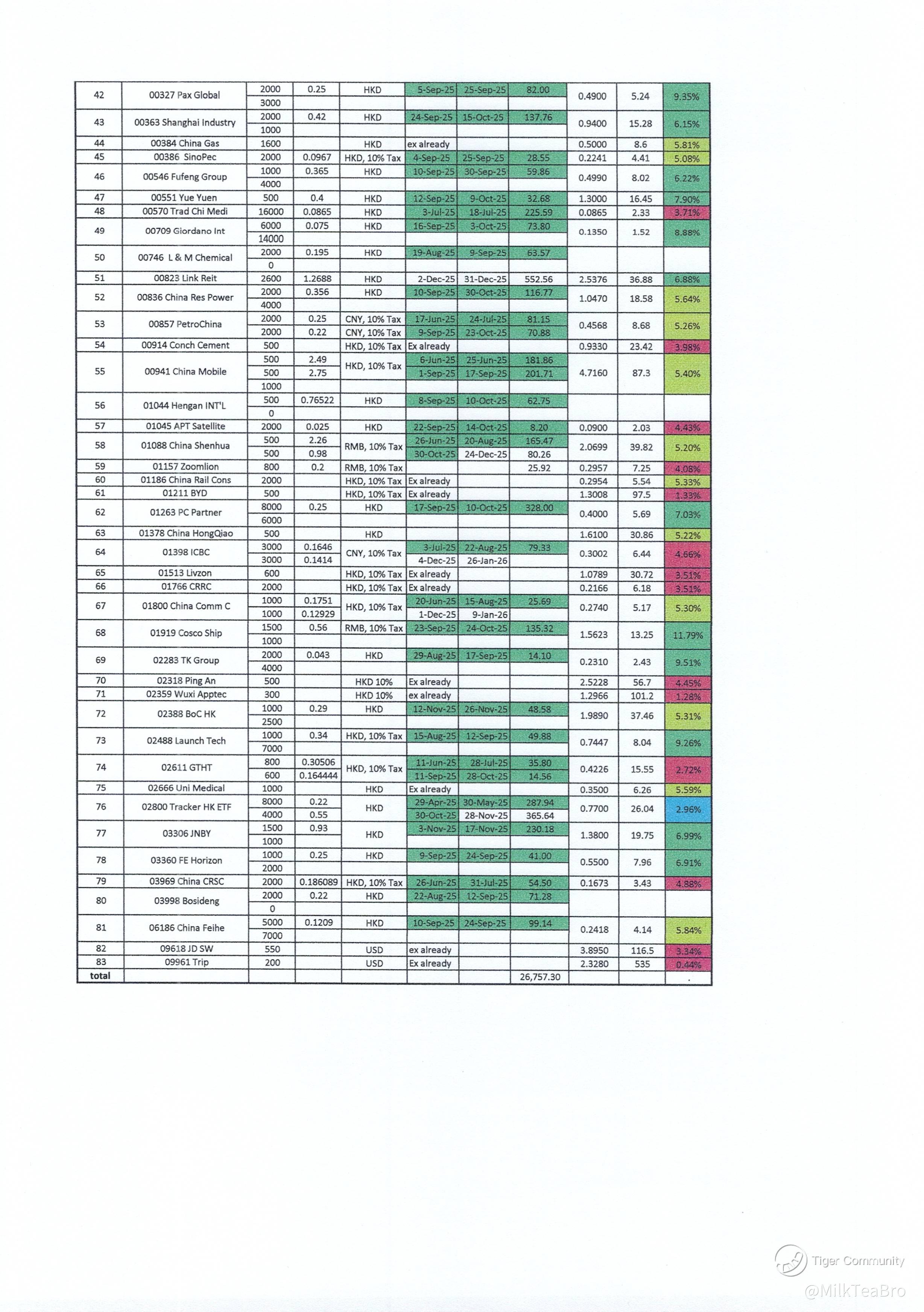 I generally prefer “old economy” stalwarts like banks, REITs, and utilities—businesses with sustainable operations and high dividend yields. At the same time, I’m also optimistic about select “new economy” names: Alibaba, Trip.com, BYD, and WuXi AppTec.