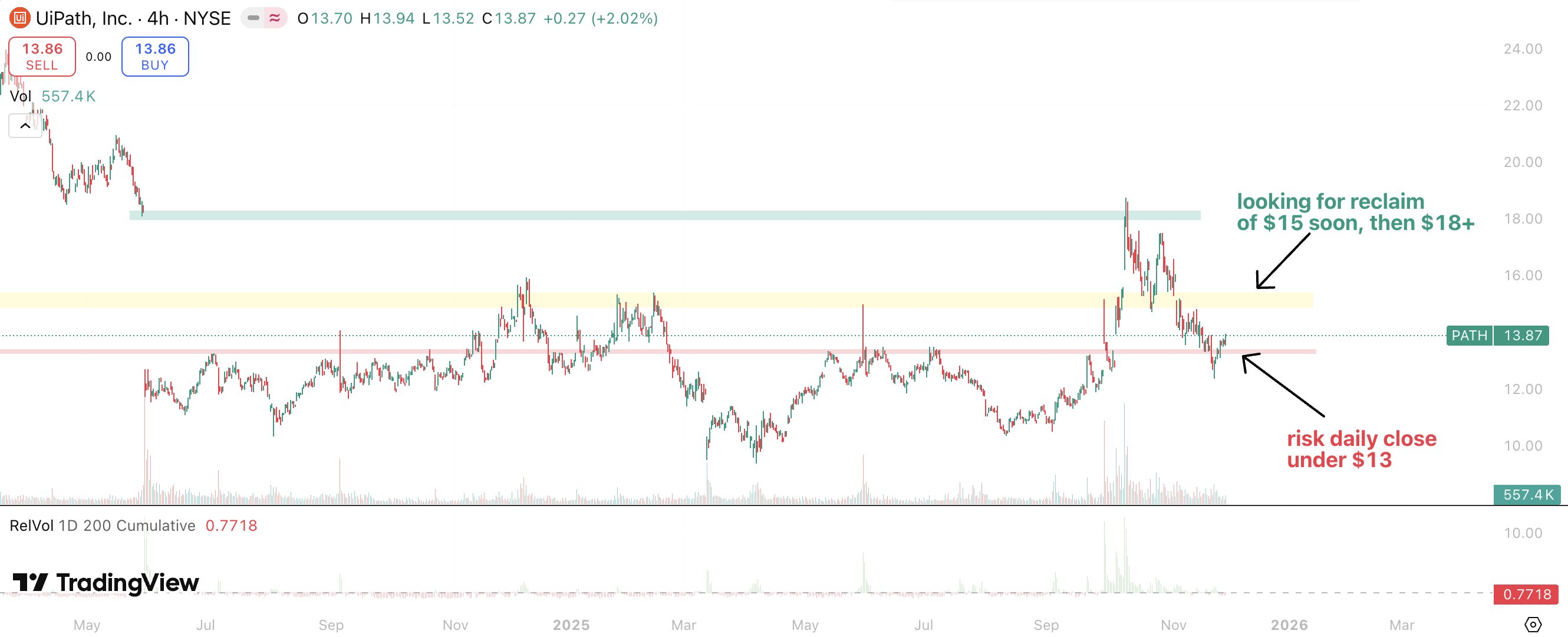 PATH now $13.85, my levels of interest are shown on the chart screenshot attached.