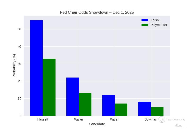 Trump's dropping bombshells like holiday fireworks β teasing his Fed Chair pick on Sunday with a "soon" announcement that could flip the script on 2026's rate path, just as QT bows out today, flooding markets with $1 trillion in fresh liquidity and yanking December cut odds to a sizzling 87%. Prediction markets are in a frenzy: Kevin Hassett's odds skyrocketed to 55% on Kalshi after his "happy to serve" nod, edging out Christopher Waller's 22% and Kevin Warsh's 12% in a race that's got Wall Street sweating over dovish dreams versus hawkish hurdles. With Powell's term ticking down to May 2026, this swap isn't just theater β it's a potential powder keg for 100bps+ cuts or a tariff-fueled stall that keeps yields glued at 4%. As S&P futures nudge 0.1% green amid easing whispers, we're gut-checking if a new boss blasts open the easing floodgates, who deserves the gavel, and if loyalty trumps independence in Trump's Fed 2.0. Buckle up β this chair shuffle could crown cut kings or crash the party. π€πͺ