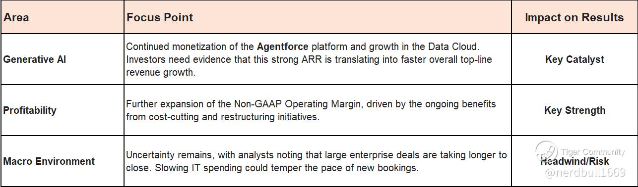 Salesforce is set to report its fiscal Q3 2026 earnings, with the market focused on two primary factors: the growth rate of its AI/Data offerings and sustained profitability amidst macroeconomic caution.