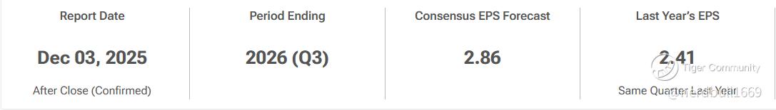 $Salesforce.com(CRM)$ reports fiscal Q3 2026 earnings on Wednesday, December 3, 2025, after the market closes.