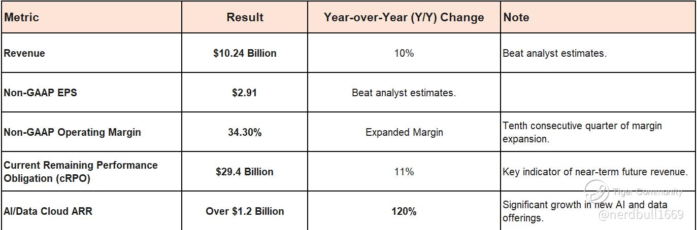 Salesforce reported a strong beat across key financial metrics for Q2 fiscal year 2026 (ended July 31, 2025). The results underscored the company's focus on profitable growth and significant traction in its Artificial Intelligence (AI) initiatives.