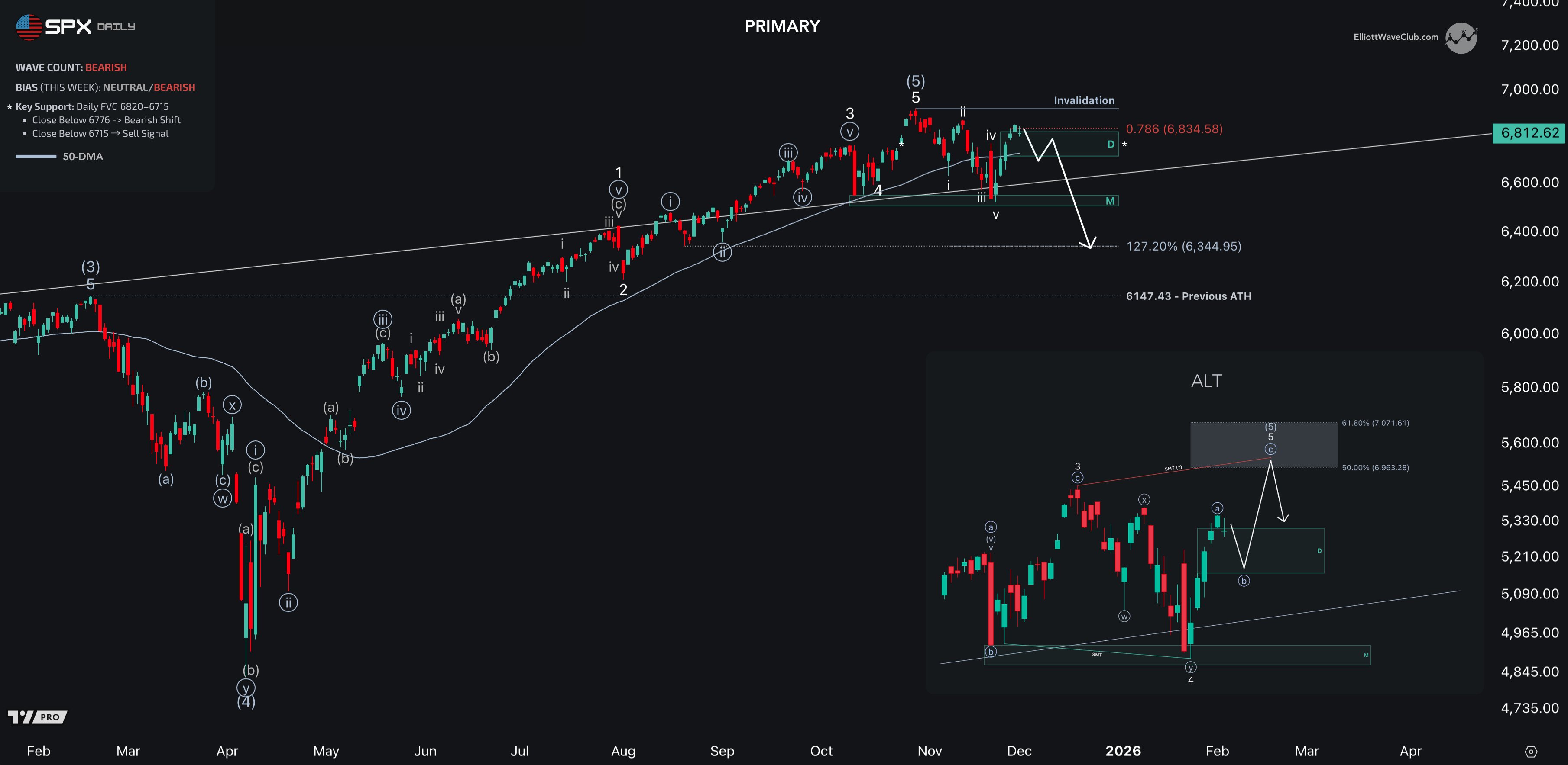 A close below 6,776 would mark the first bear shift, while a close below 6,715 is the true sell signal that confirms the next leg down.