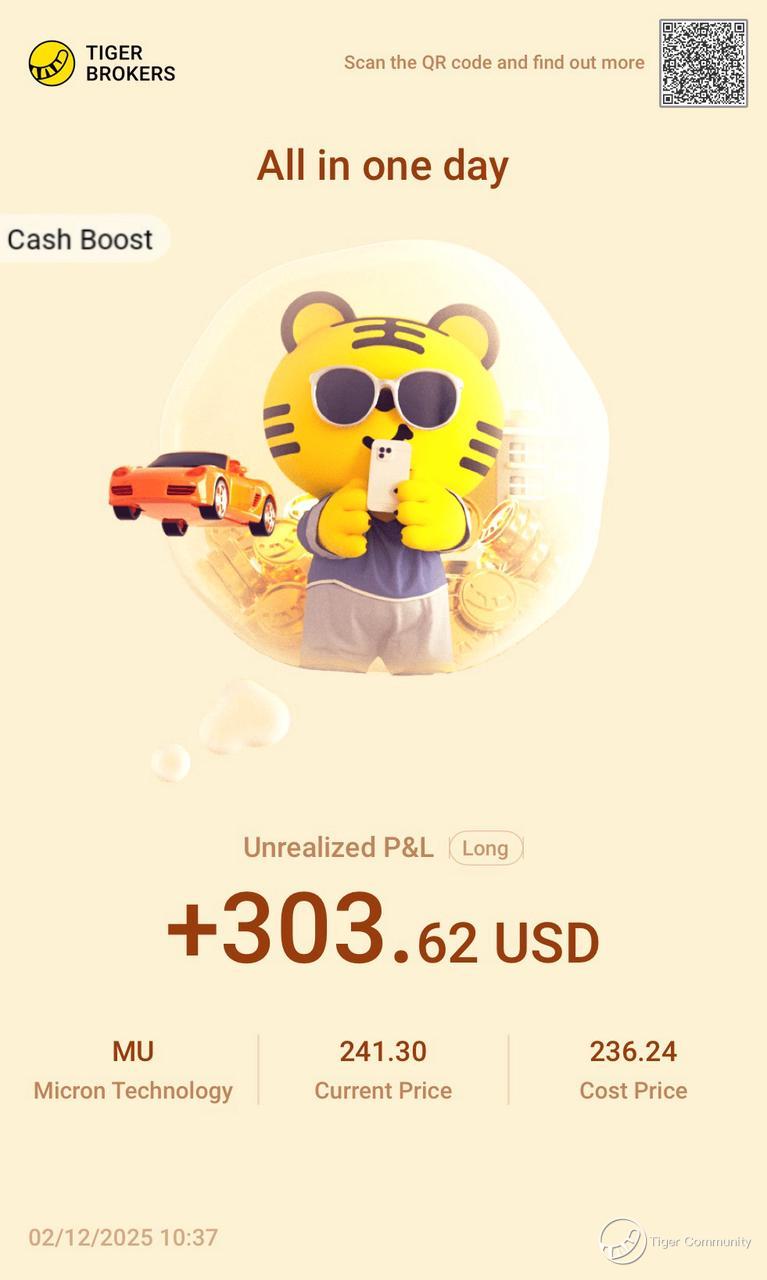$Micron Technology(MU)$ Nice ride on MU! Memory chip cycle turning + AI demand booming = solid thesis. This nuclear-energy-level trend is just getting started — just hold and relax. BTW, the contra688 offer is fire! Perfect boost for newbies to jump in.