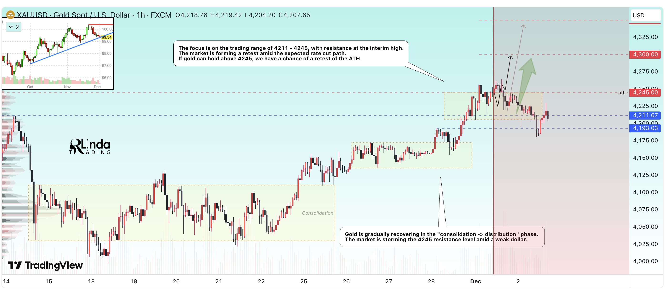 Key levels to watch include resistance at $4,245 and $4,300, and support at $4,211 and $4,193.