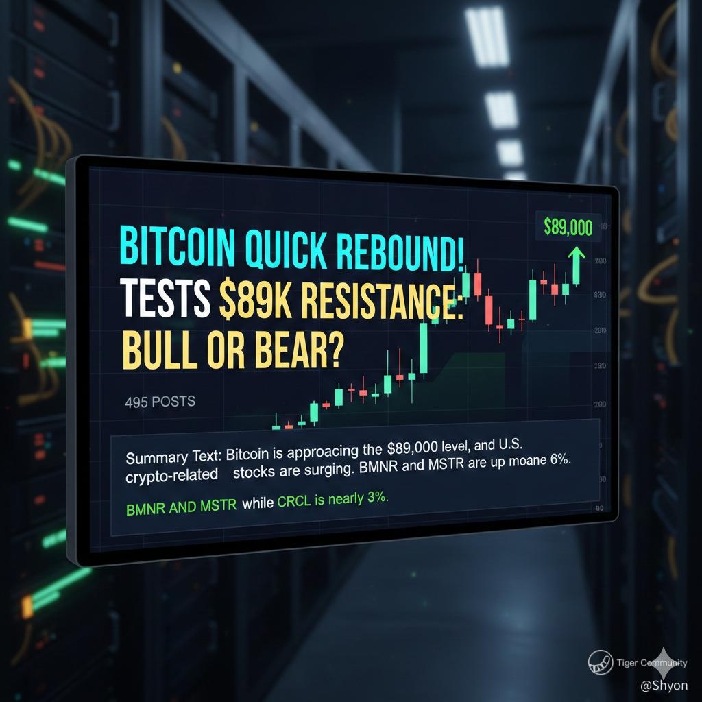 Bitcoin's quick rebound toward the $89K resistance definitely caught my attention. After the recent volatility, seeing BTC push back to this level shows that buyers are still very active, and sentiment hasn't been completely shaken. For me, the key question now is whether this bounce is driven by genuine accumulation or just short-term positioning before the next big move.