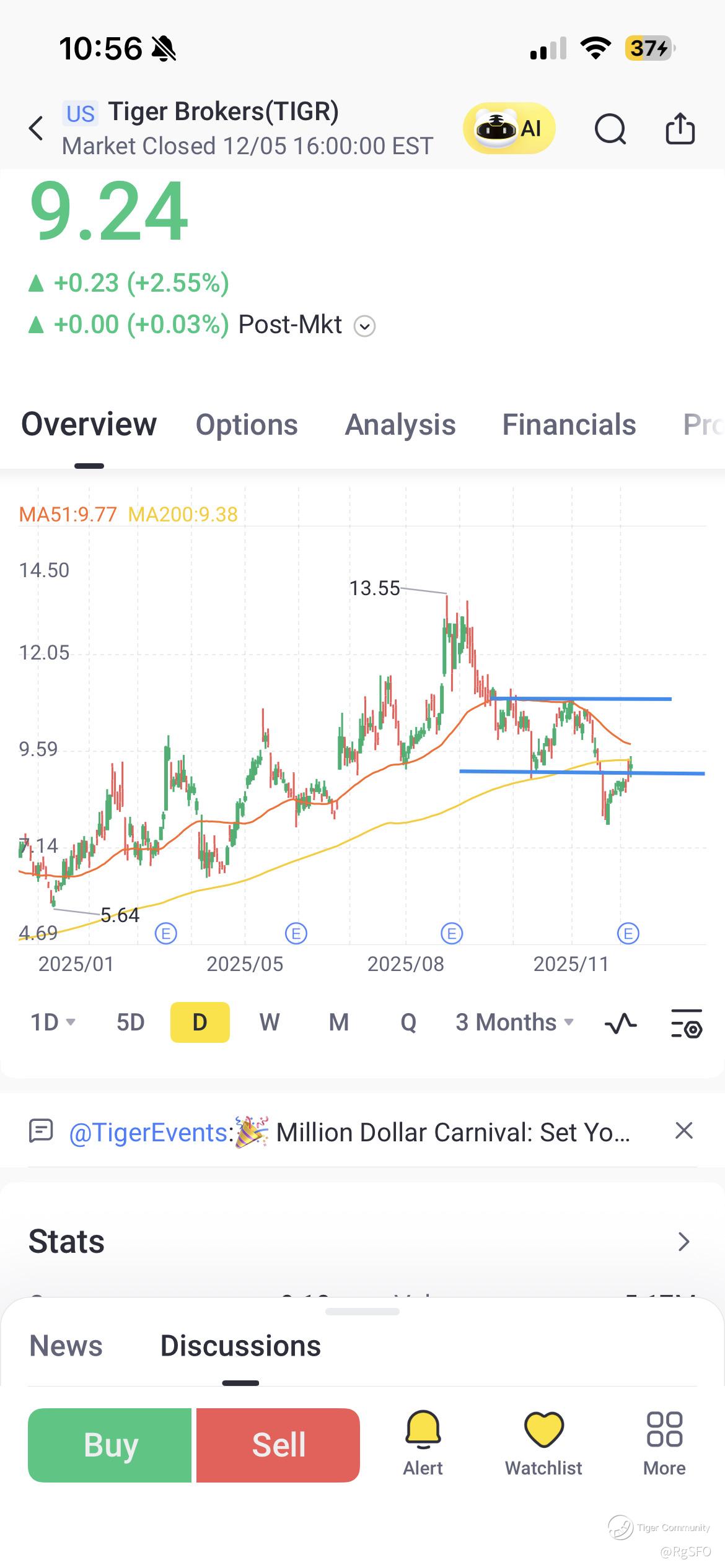 $Tiger Brokers(TIGR)$ further down side risk is limited. The Q3 earnings growth was very good. 73% YoY revenue growth, nearly 300% income growth. if Robin Hood or Schwab were to have such revenue and profit growth they would trading at 30+ pe multiples. This was knocked out by short sellers and market makers in the option market. January calls have 300k+ open interest. It amounts to 30M shares.