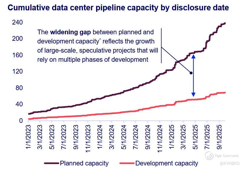 A staggering 180GW chasm between planned data centre capacity for actual development capacity. - X user ZeroHedge