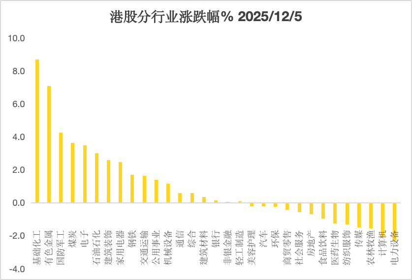 Chemicals, non-ferrous metals, and defense led the gains this week, while computers and electrical equipment lagged behind.