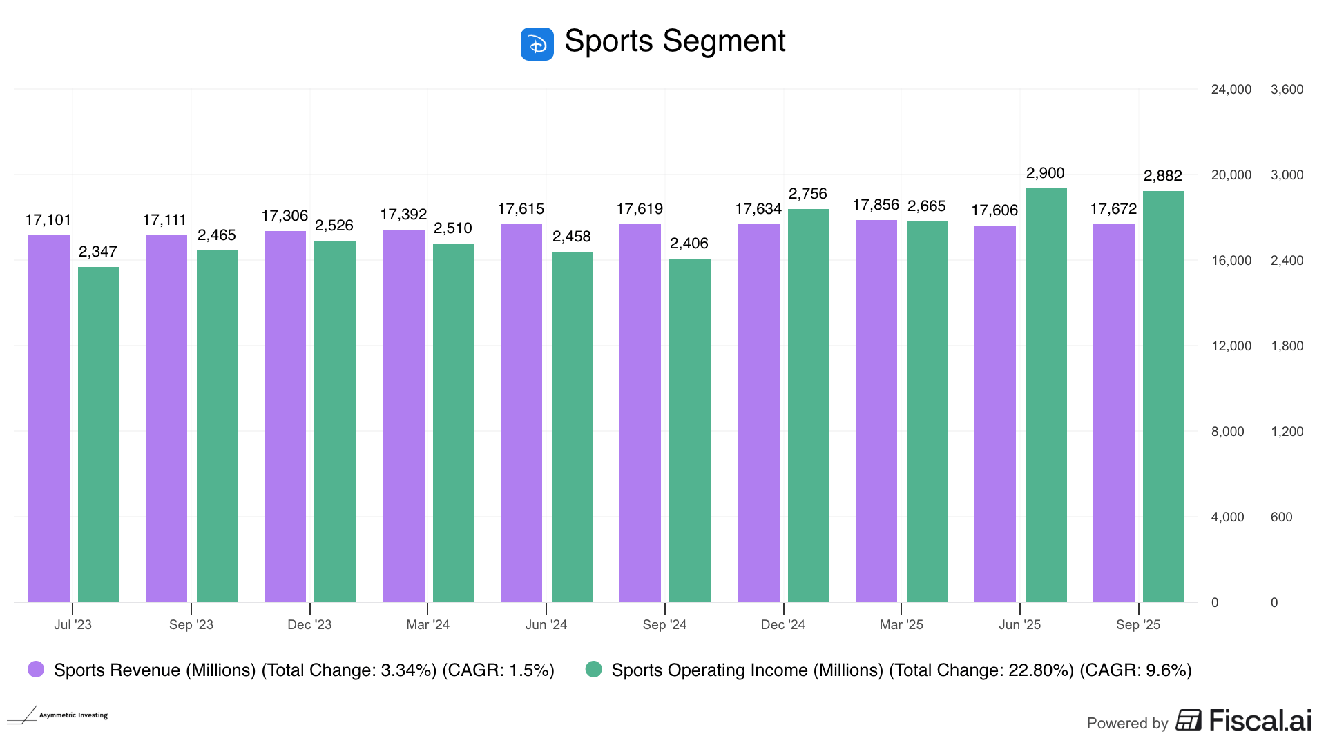 The sports segment has been flat in a dying cable environment and could explode now that ESPN is going direct.