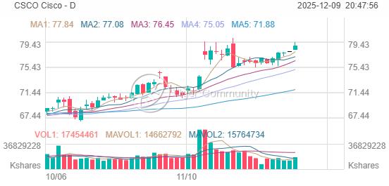CSCO closed at $78.86 on December 9th (EST), gaining +1.14% (+$0.89).