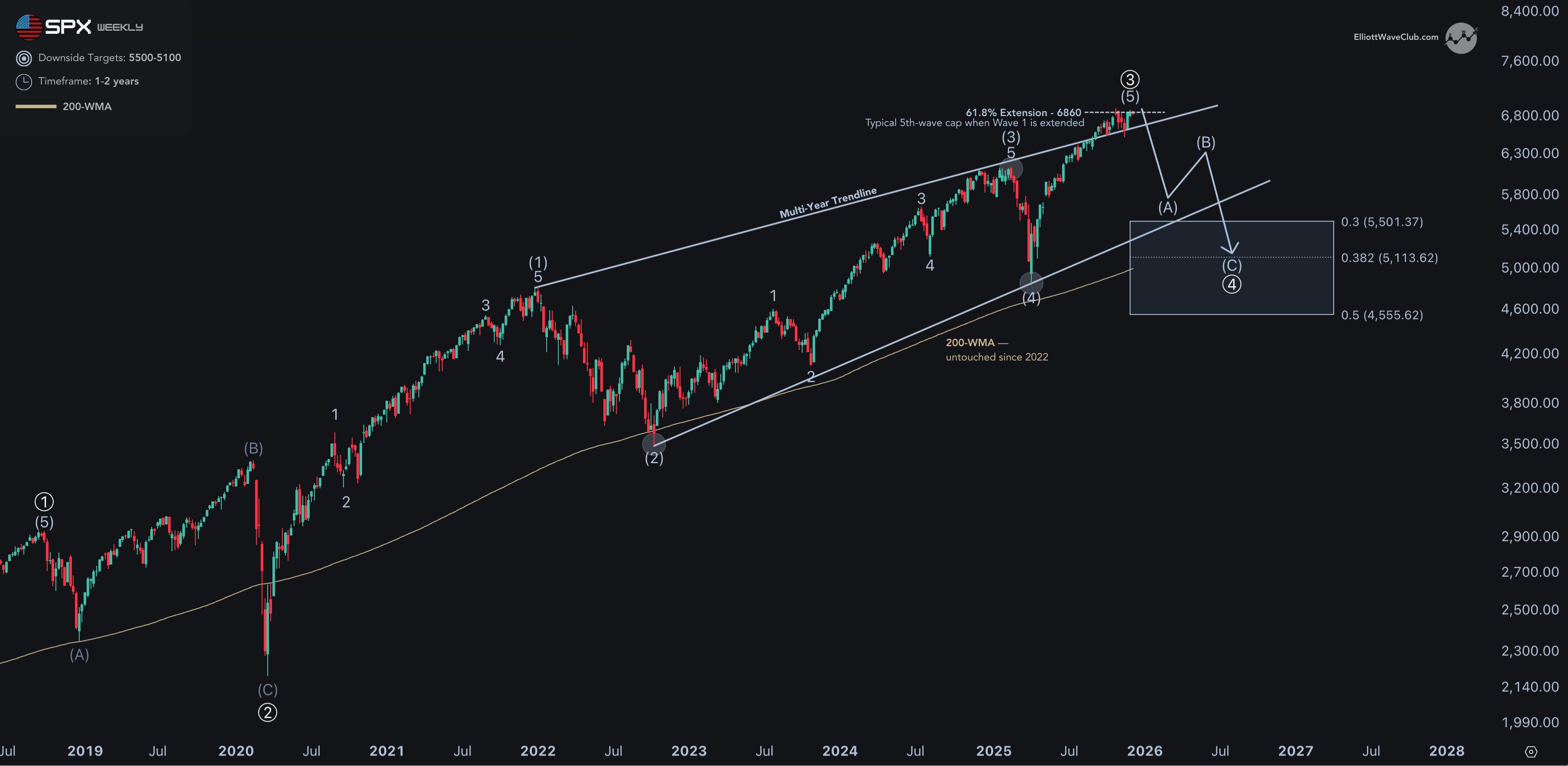 SPX is primed for a major Wave-4 retracement of the entire 2020–2025 advance.