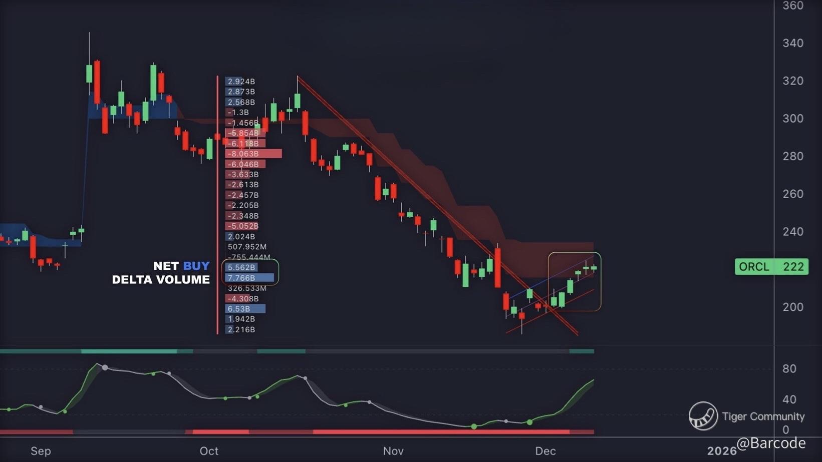 β’ $ORCL at $220.75 is down about 33 % from the peak