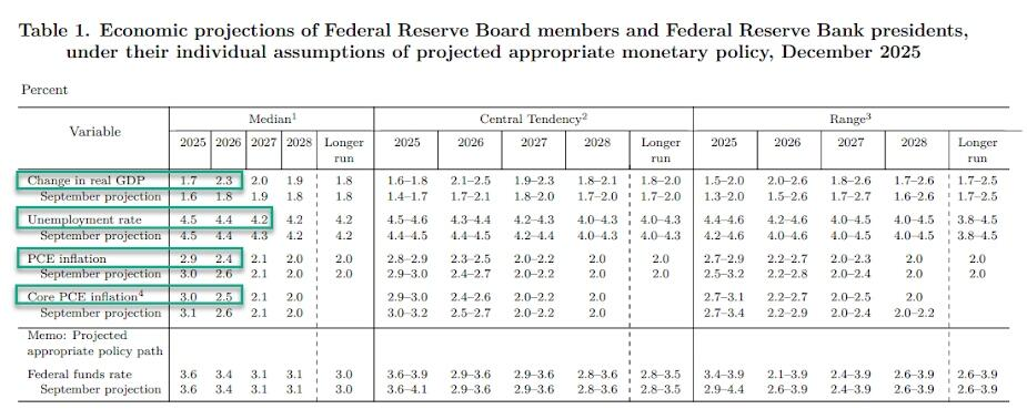 • 2025 year-end PCE: lowered from 3.0% to 2.9%