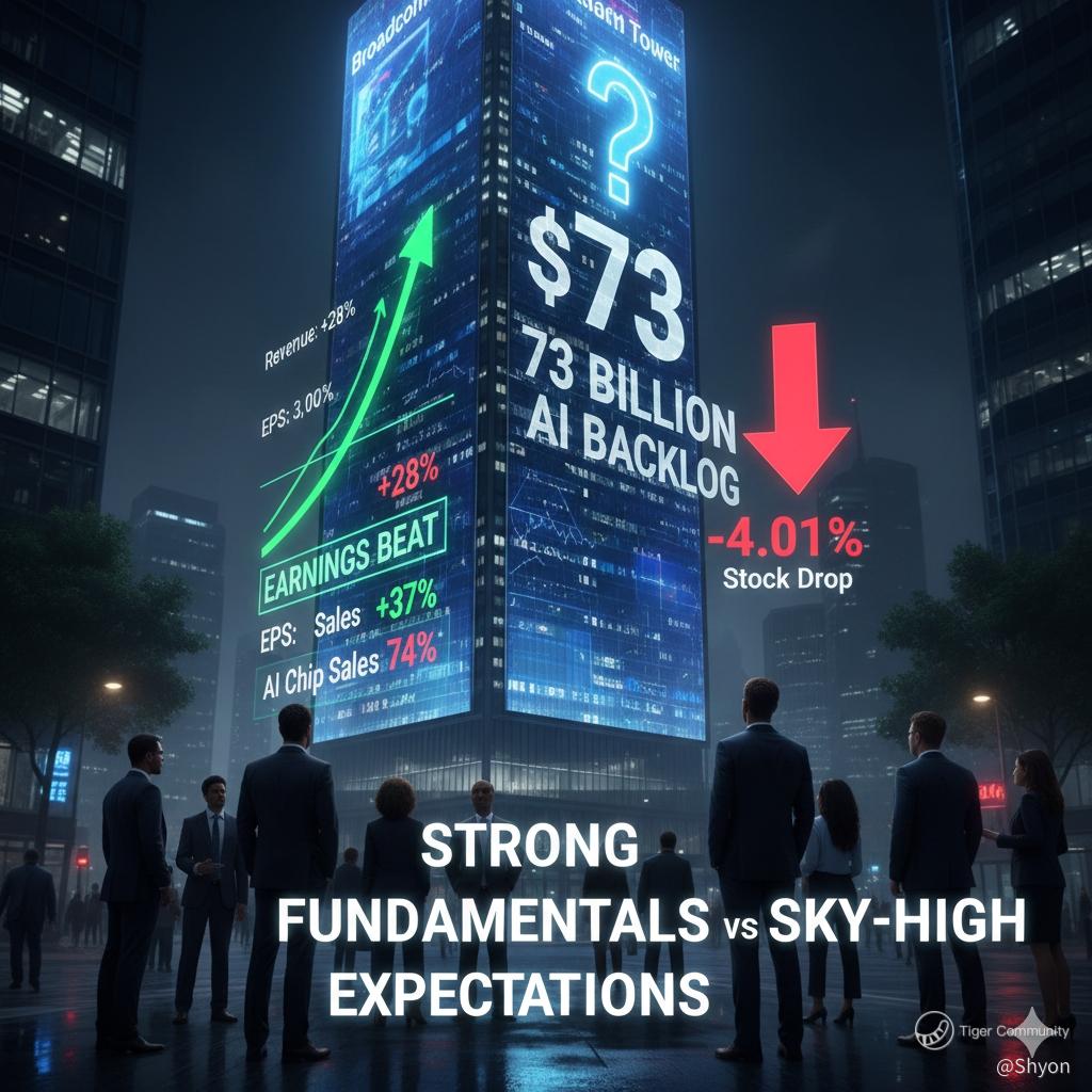Interpreting AVGO's earnings, I think it's a classic case of strong results clashing with sky-high expectations. Broadcom is clearly capitalizing on AI and data center demand, but the stock drop signals that investors are now focusing not just on growth, but on execution, backlogs, and how quickly revenues translate into tangible results. Personally, I would remain bullish on Broadcom's $Broadcom(AVGO)$