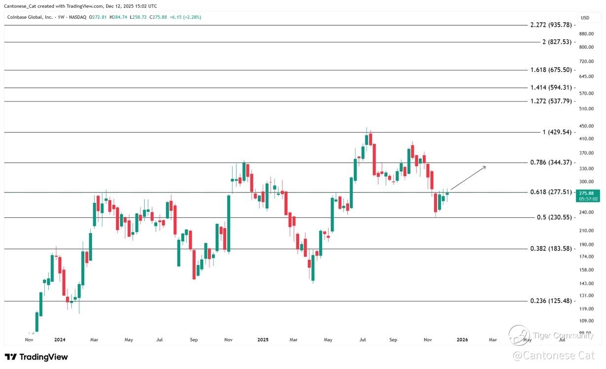 If $COIN breaks 0.618, it'd go to $344, and that'd be too bullish. It's not ready to break resistance yet, so probably more chopping before it does