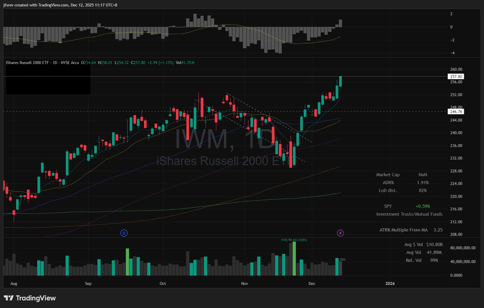 It may already be late to add fresh longs in $iShares Russell 2000 ETF(IWM)$ names after a 12-day upcycle following the initial downtrend-channel breakout.